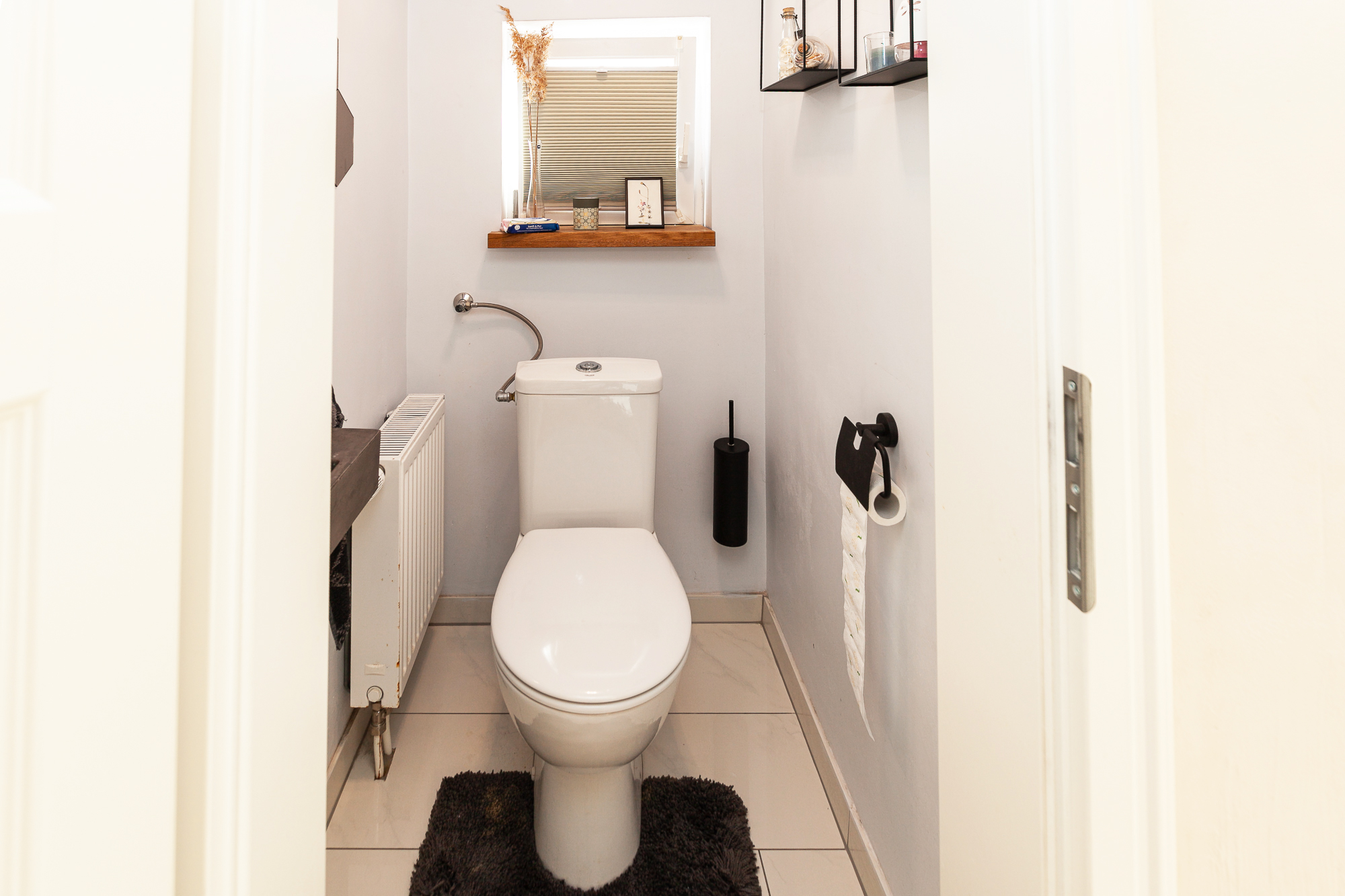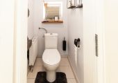 – Einbau eines modernen, hochwertigen Tageslicht-Gäste-WC´s (Feinputz: hellgrau, Fliesen: creme)