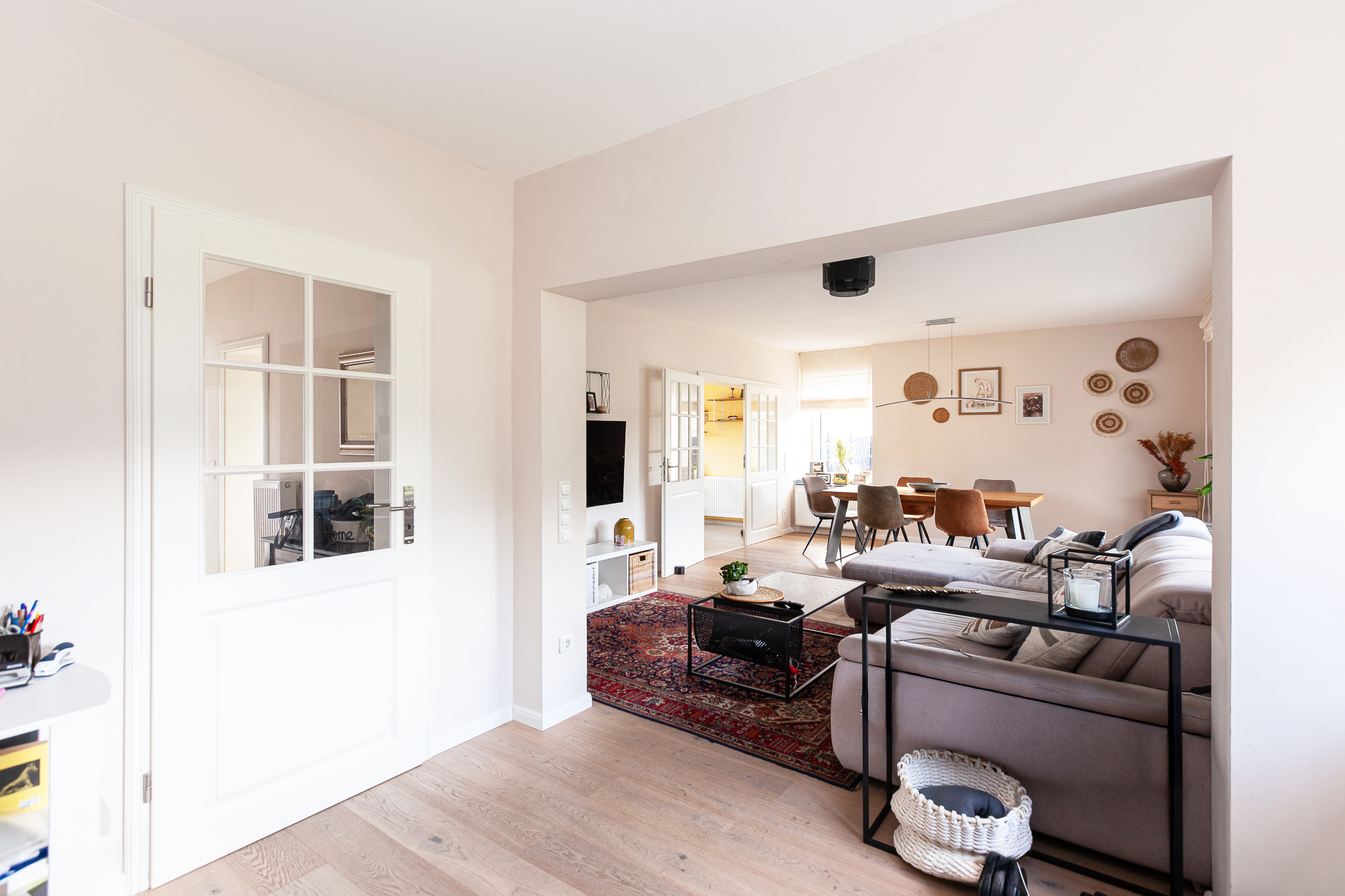 – Einbau moderner, schicker Türelemente, weiß (im Wohnbereich zur Küche mit Flügeltür, teilweise mit Glaseinsätzen)
