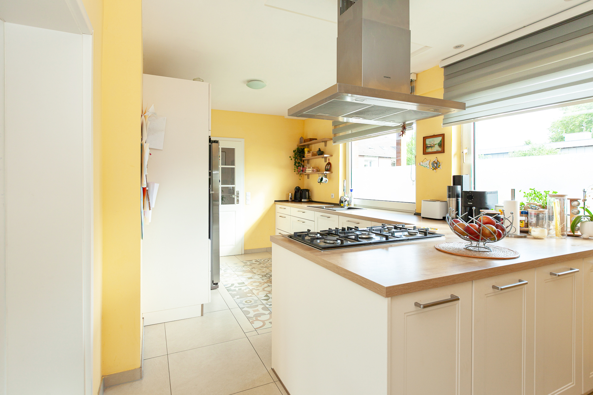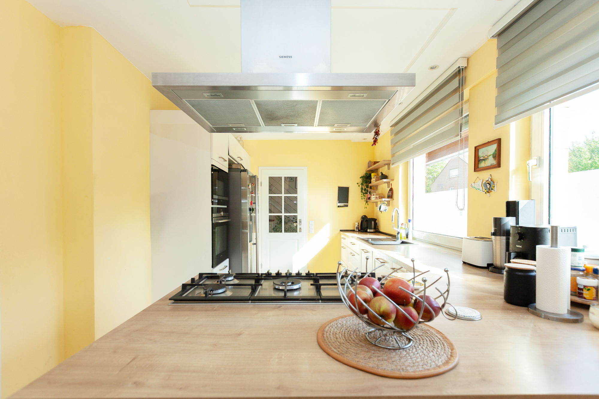 – hochwertige Einbauküche (Hersteller: Nobilia), mit Kochinsel, großem Gas-Kochfeld und Siemens-Elektroeinbaugeräten