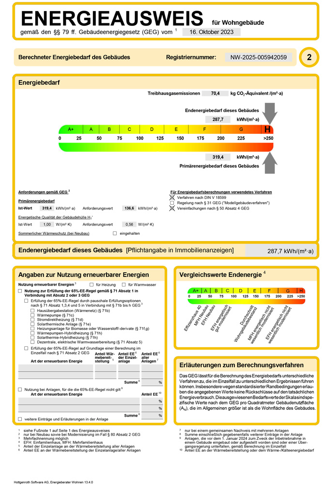 Kennwert :287,7 kWh / (m²a)
