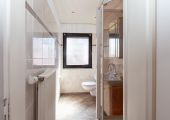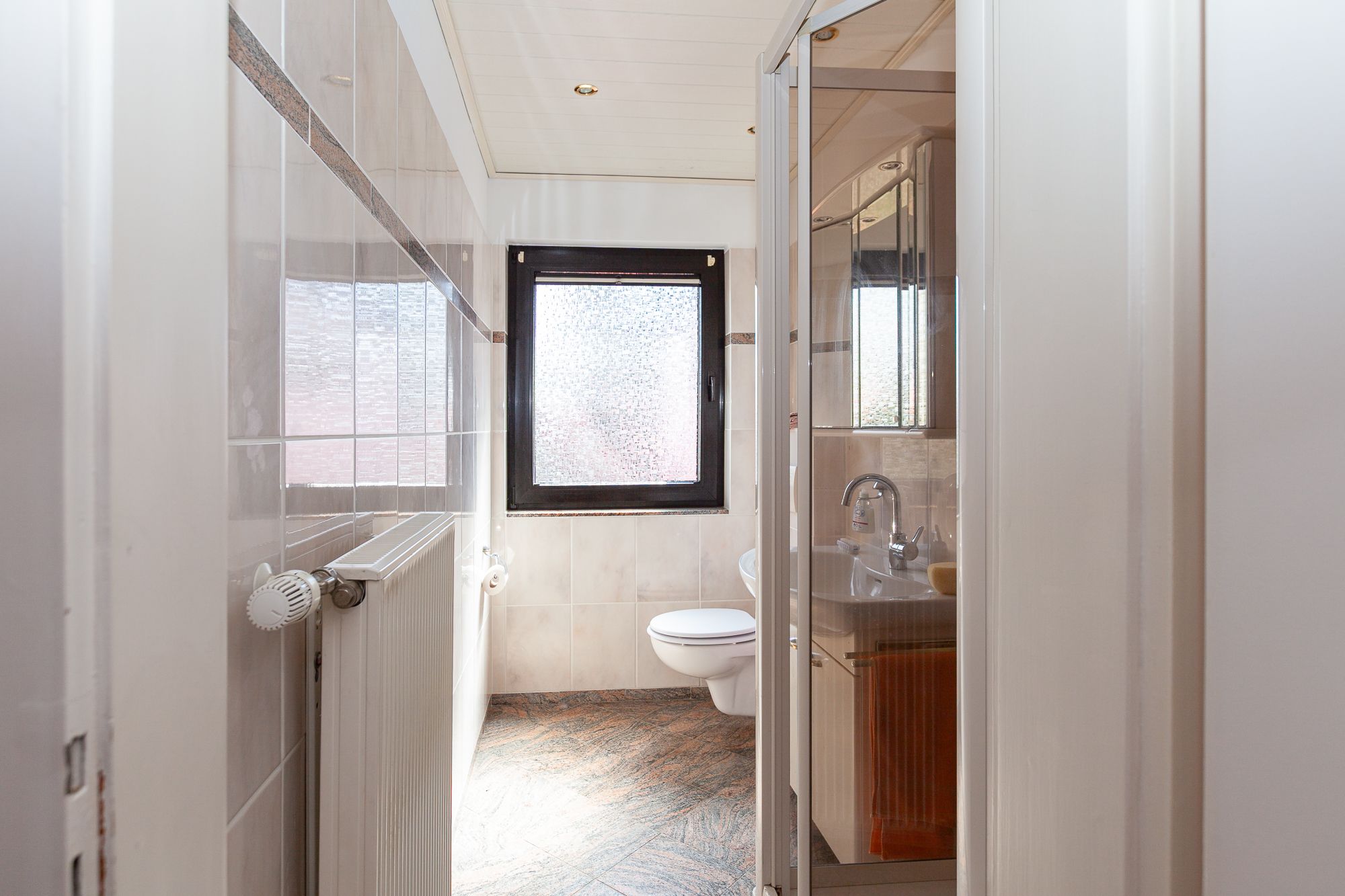 – Tageslicht-Badezimmer im EG mit Dusche (Fliesen: creme marmoriert)