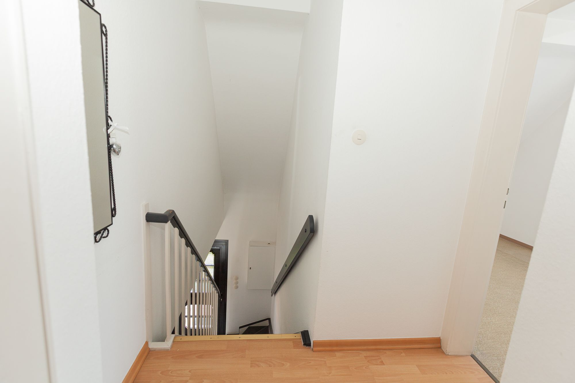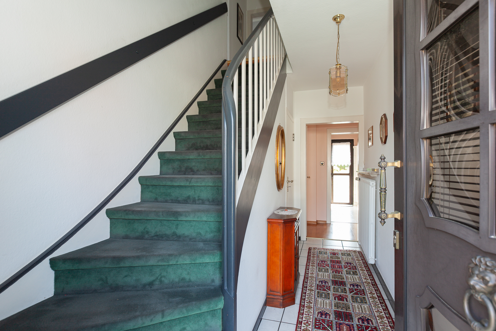 – geschlossene Holztreppe, Stufen mit Teppich-Auslegeware