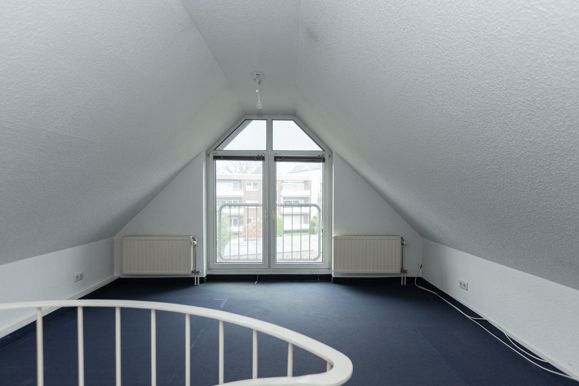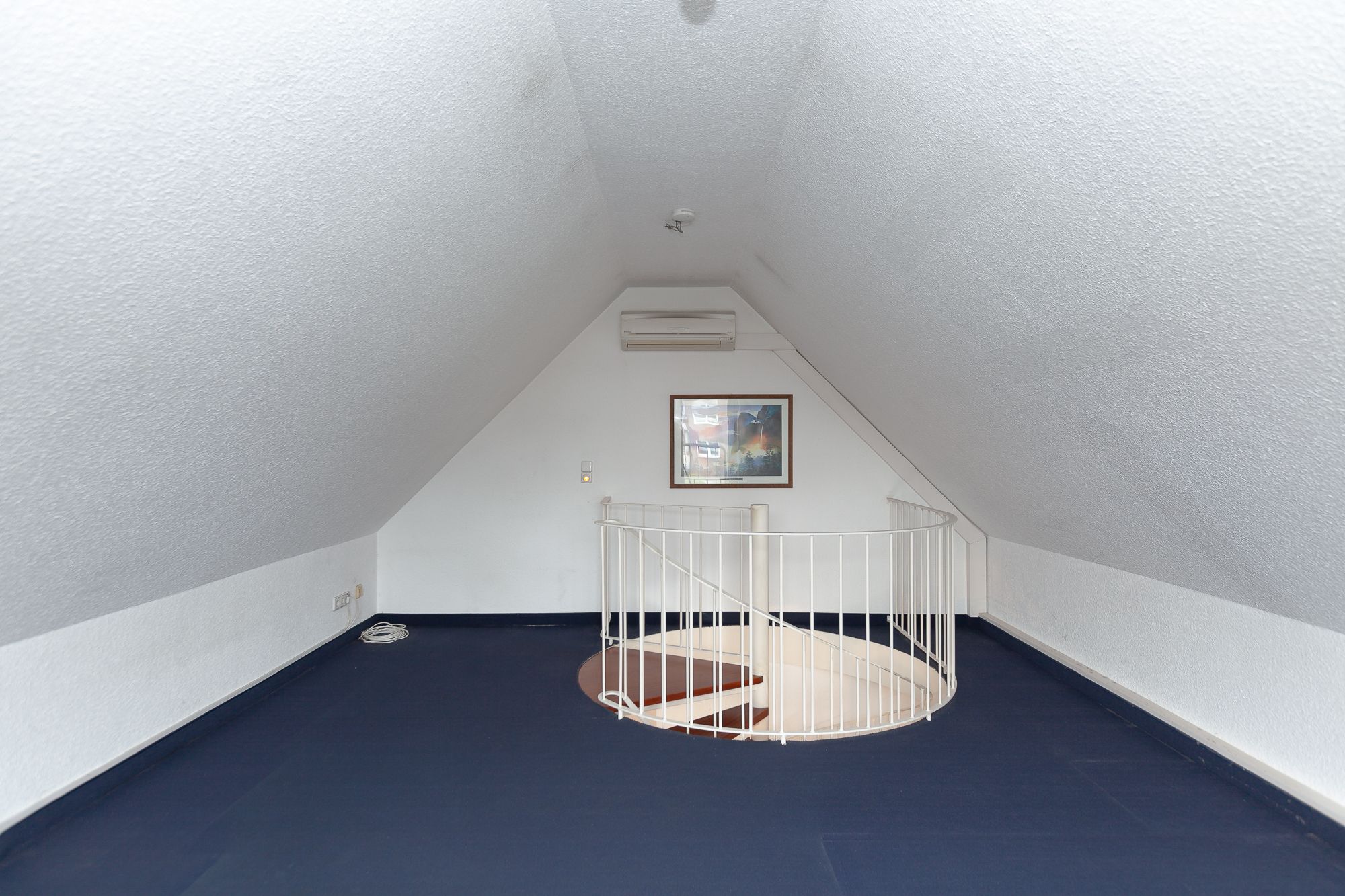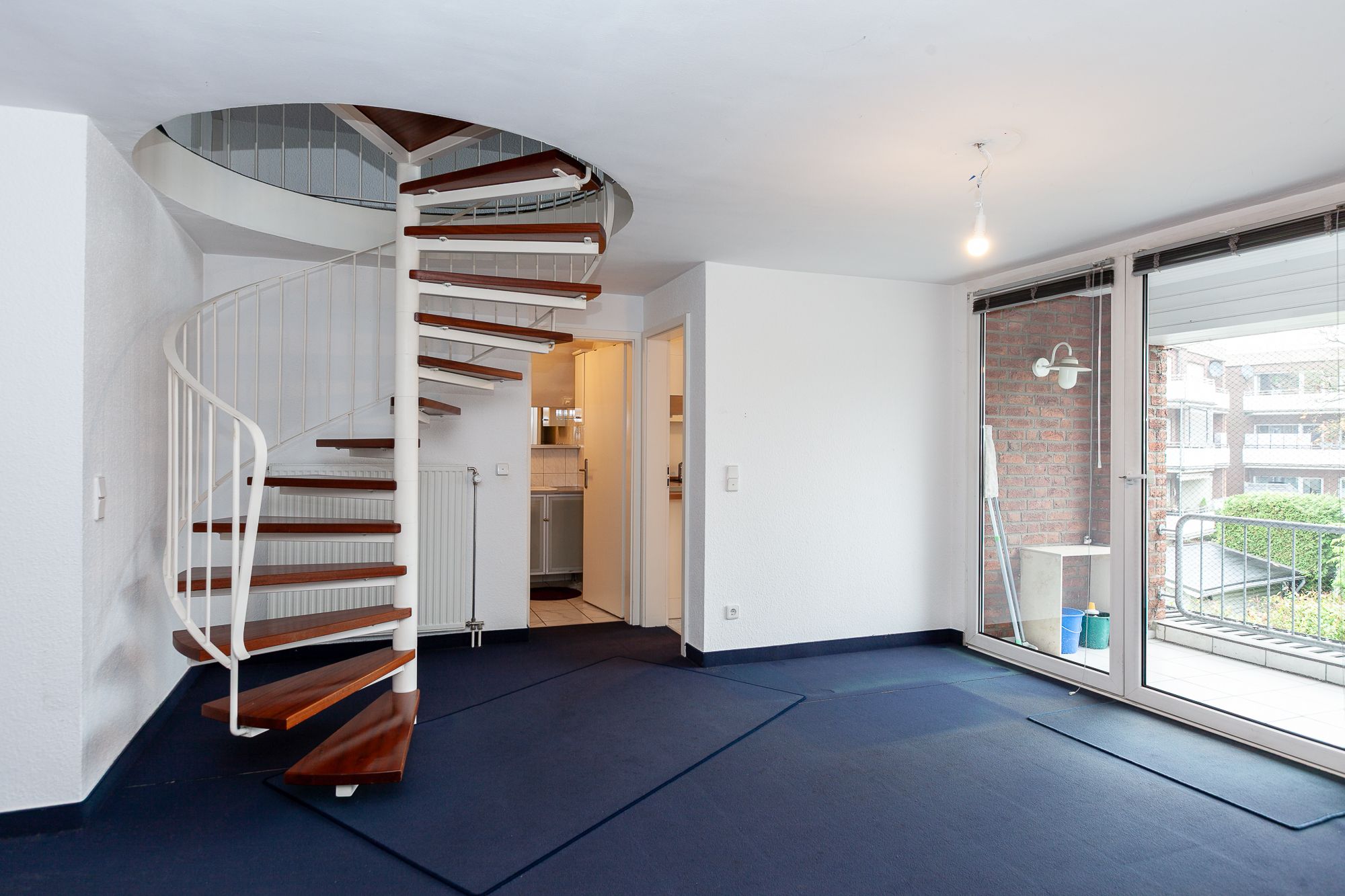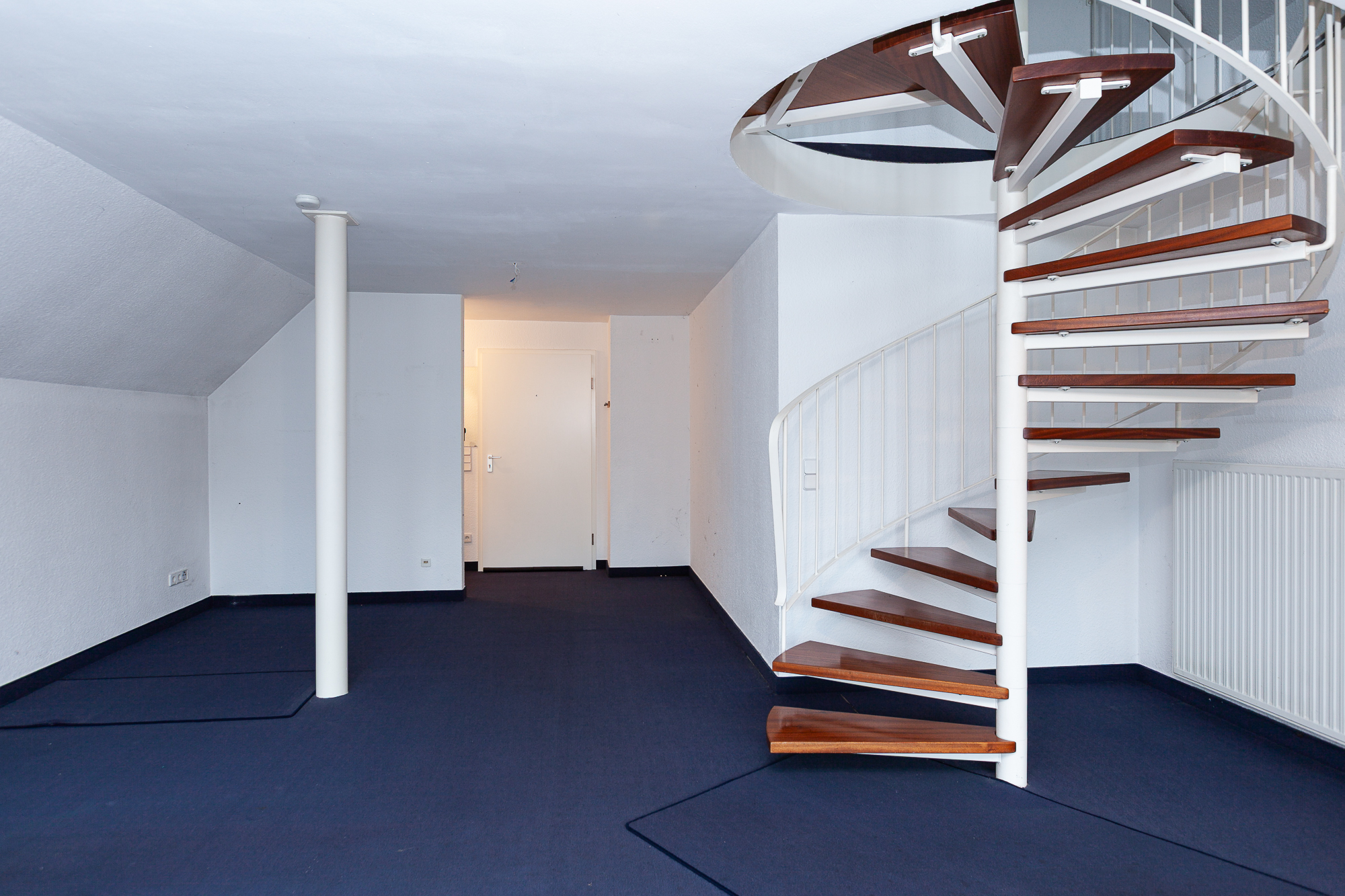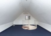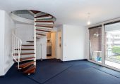 – offene Wendeltreppe (Metall: weiß) mit Holzstufen